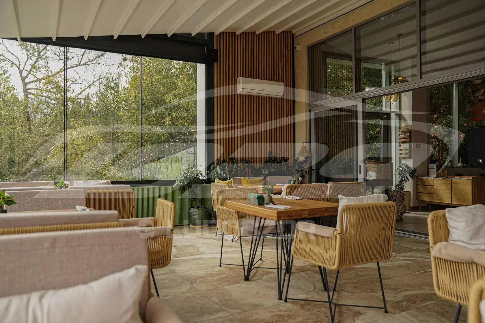 Ресторан доступен для полной или частичной аренды. Посетители могут арендовать отдельные залы или веранду, в зависимости от планируемого мероприятия и количества гостей.